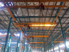 單梁、雙梁橋式起重機是橫架于車間、倉庫和料場上空進行物料吊運的起重設(shè)備。由于它的兩端坐落在高大的水泥柱或者金屬支架上,形狀似橋。橋式起重機的橋架沿鋪設(shè)在兩側(cè)高架上的軌道縱向運行,可以充分利用橋架下面的空間吊運物料,不受地面設(shè)備的阻礙。它是使用范圍最廣、數(shù)量最多的一種起重機械。LD型單梁橋式起重機技術(shù)先